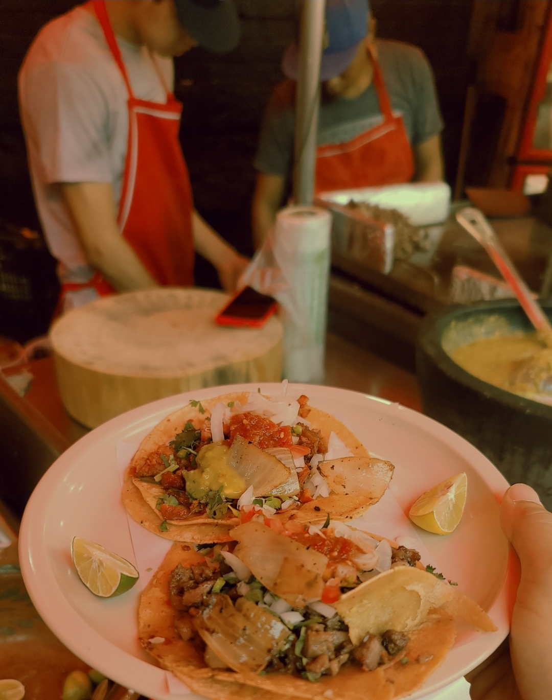넷플릭스 타코연대기나 백종원의 스트리트 푸드파이터 등에 소개된 집도 먹을만 하지만 오늘 먹은 길거리 따꼬는 정말 최고네요. 특히 Log Amigos (친구들) 이라는 노점의 수아데로 (부드러운 고기) 따꼬는 압권!⁣