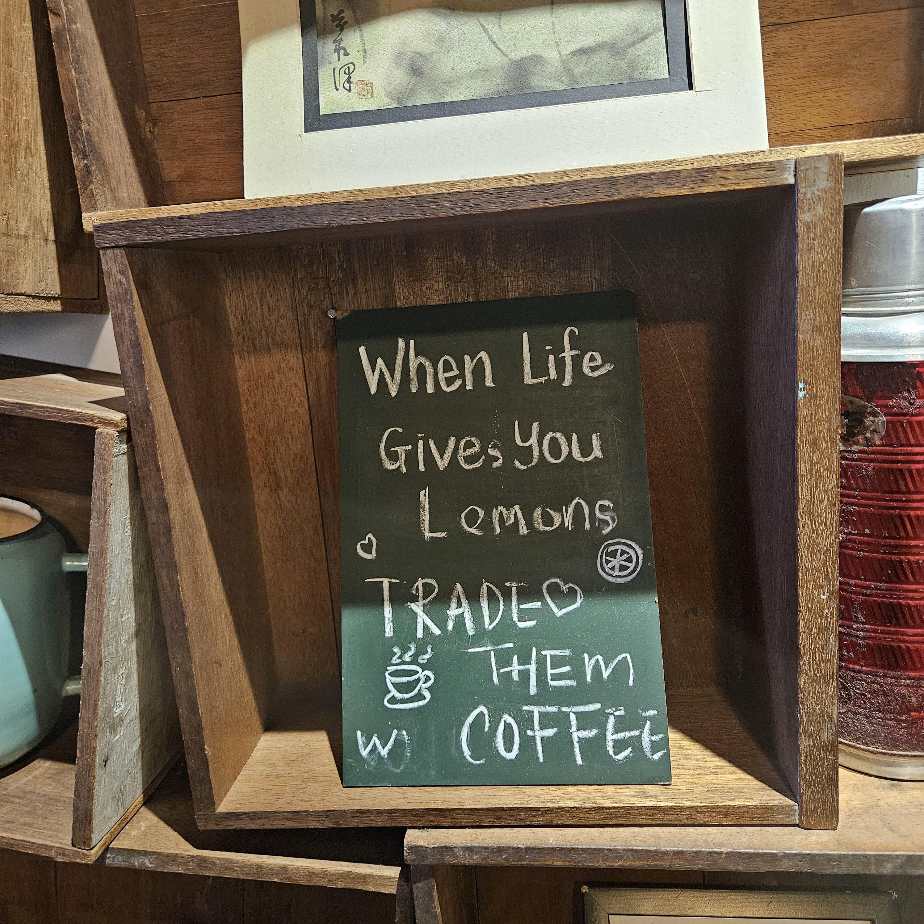 "당신 인생이 빅엿을 먹이면, 커피랑 바꿔줘라!"